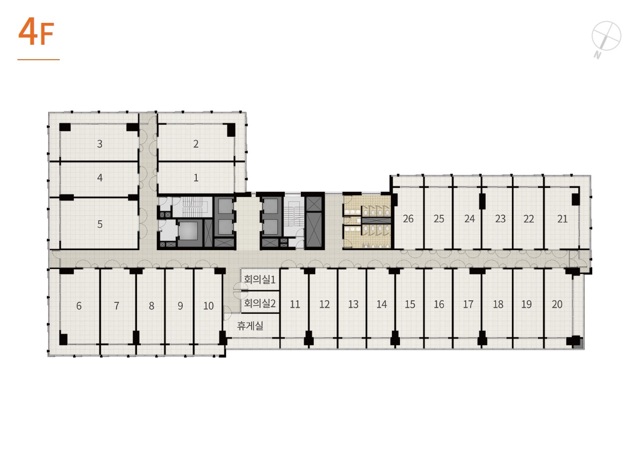 섹션형 평면 설계로 다양한 크기의 사무,업무 공간 맞춤 구성이 용이,